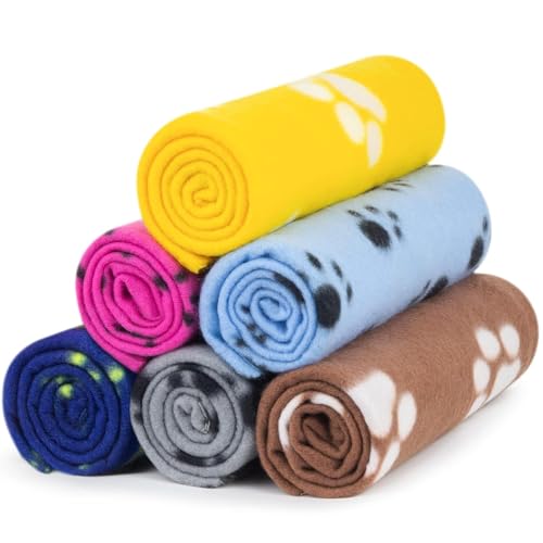 AK KYC 6 Pack Mixed Puppy Blanket Cushion Dog Cat Fleece Blankets Pet Sleep Mat Pad Bed Cover with Paw Print Kitten Soft Warm Blanket for Animals… M