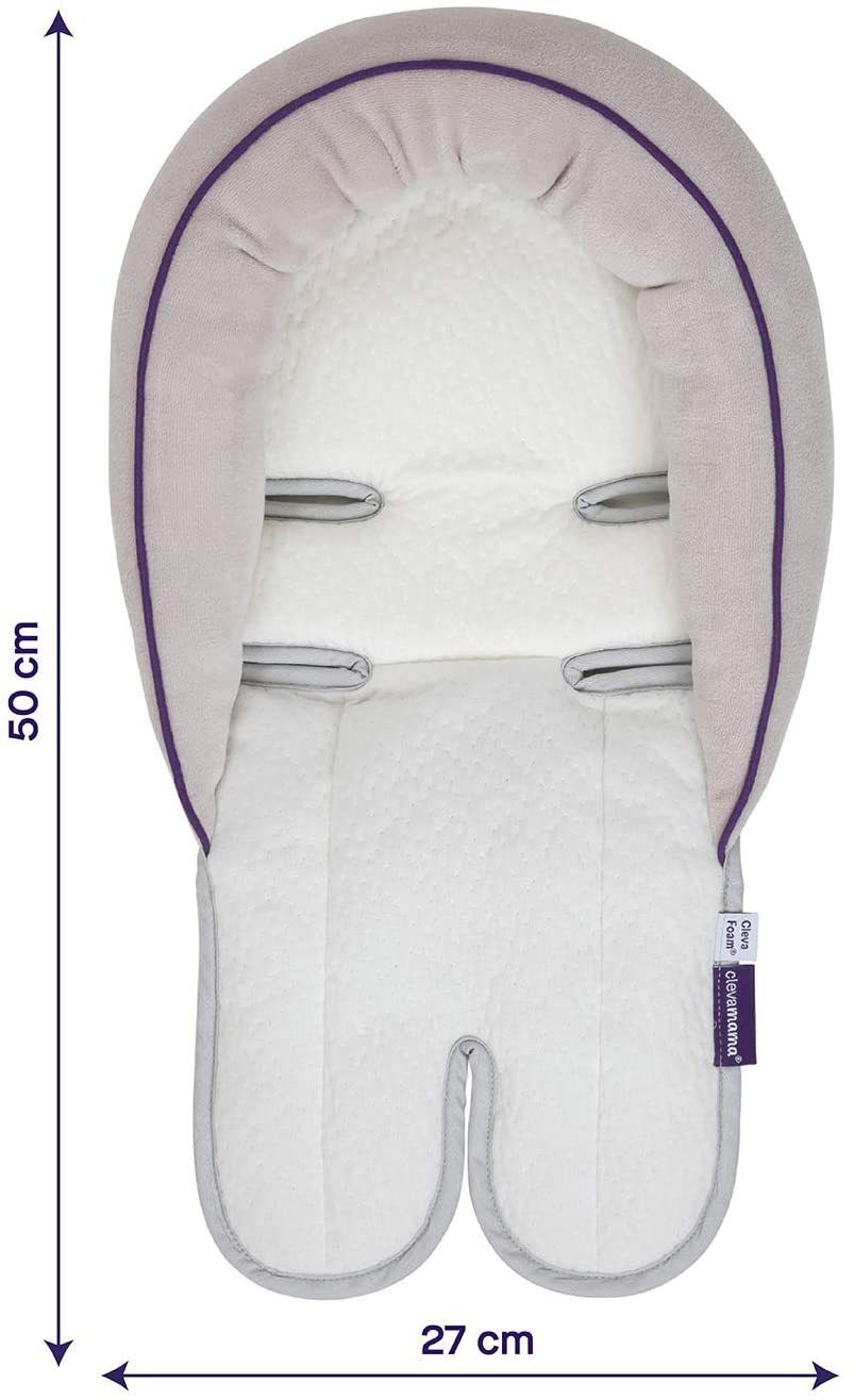 Clevamama ClevaFoam Head and Neck Support - Car Seat and Pram Insert (+0 Months) Grey/Purple
