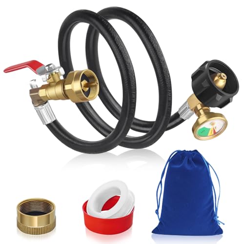 FANOVO Propane Refill Adapter with Valve and Gauge, 36'' 1 Pound Propane Small Bottle Filling Adapter Convert Filler Hose 350psi High Pressure, QCC1 I