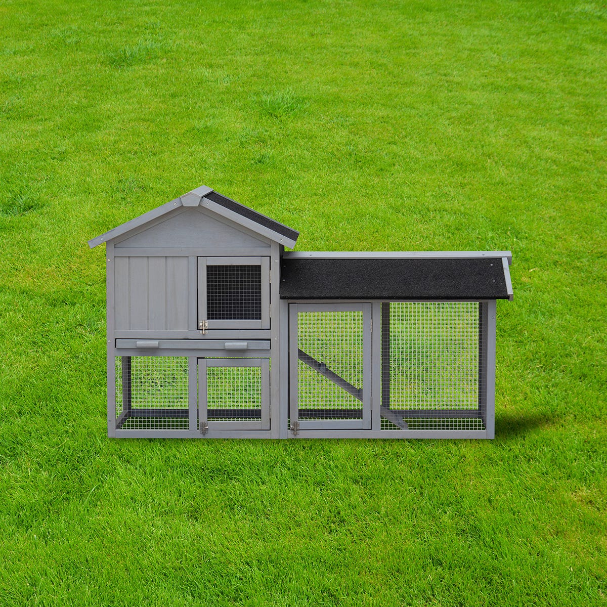 Two Storey Hutch with Run Grey FSC® Certified