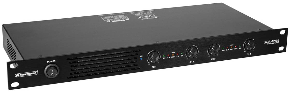 4 Channel PA Amplifier - Stereo Parallel & Bridged 100V Mode. 1200W Total