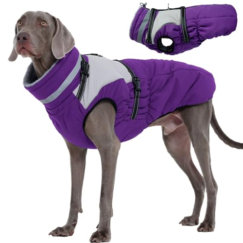 Kuoser Dog Coat, 2 in 1 Dog Jacket with Harness Built in, Winter Waterproof Puppy Puffer Jacket Snowsuit for Small Medium Large Dogs, Cold Weather Ref