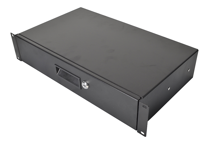 2U Metal Rack Drawer for Data Racks & Flight Cases with Lock 255mm Deep