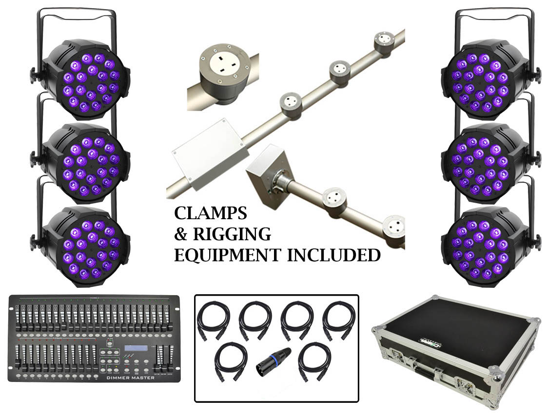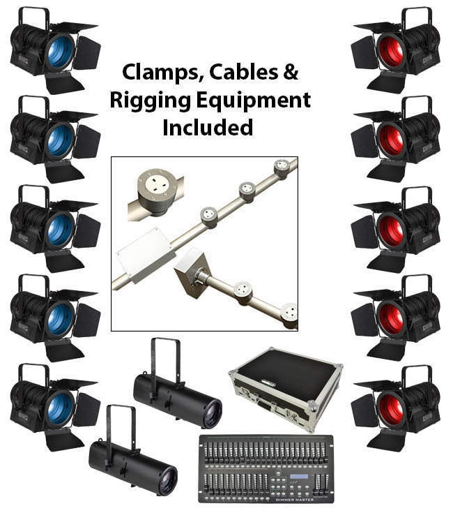 Complete Stage Lighting Installation Package with Powered Lighting & LED Par Cans