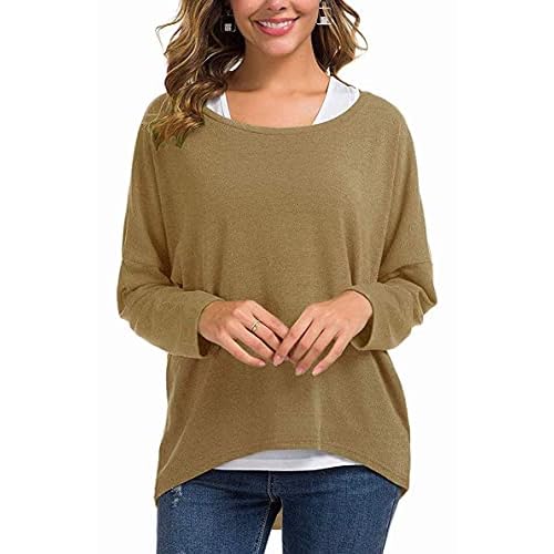 UGET Women's Oversized Baggy Tops Loose Fitting Pullover Casual Blouse T-Shirt Sweater Batwing Sleeve Small Tan