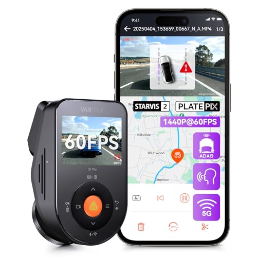 VANTRUE S1 Pro 2.5K STARVIS 2 HDR Dashcam Voiture Avant, 5GHz WiFi GPS Dash Camera Avant, Surveillance LTE Optionnel, ADAS, Contrôle Vocal en França