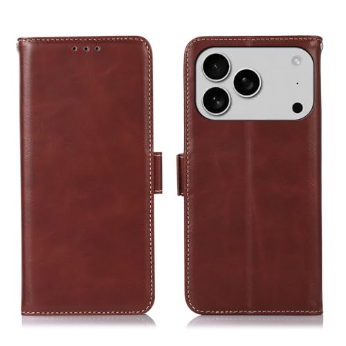 Genuine Leather Case for iPhone 17 Pro Max Pro with 3 Credit Card Slot RFID Blocking,Crazy Horse Pattern and Magnetic Closure with Full Body Screen Ca