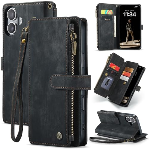 for iPhone 17 Pro Wallet Case with 7 Card Slots RFID Blocking Magnetic Closure Zipper Cash Bills Pocket, Premium PU Leather with Crossbody Wristlet St