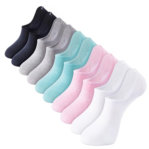 IDEGG No Show Socks Womens and Men Low Cut Ankle Short Anti-slid Athletic Running Novelty Casual Invisible Liner Socks 9-12 5 Pairs Black+white+grey+pink+blue 5