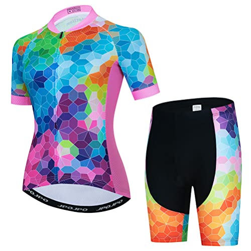 Womens Cycling Jersey Set, Summer Short Sleeve Ladies Mountain Bike Shirt and Shorts Kit MTB Suit Bicycle Clothes T2000-1 Large