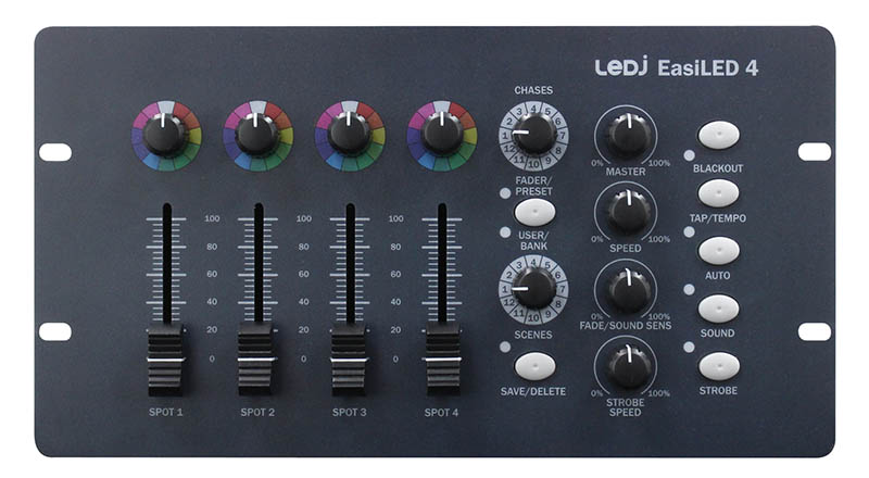 Designed to Control all LED Lighting Fixtures with up to 8 Channels. Control up to 64 Channels of 8 LED Groups. 8 Individual Buttons for Selecting 8 Groups of Lighting Fixtures. 8 Colour Preset Buttons. 8 Chases- Each with up to 32 Steps. Save Assignments onto a USB Memory Stick. 4 Operation Modes & Password Protection. 19" Rack Ears & LED Gooseneck Lamp IncludedPower Supply: 9-12Vdc- 300mA DMX Output: 3 & 5 Pin XLR Dimensions: 66 x 280 x 170mm Weight: 1.8Kg. This LED DMX controller features break through channel assignment technology. The ability to assign/patch the 8 channels of the LED Master 64 is one of its most powerful features. This gives you the option of customising the controller to the DMX channels of your lighting fixtures. The latest software features a virtual dimmer function- allowing the user to add a dimmer channel to fixtures during channel assignment.. dmx controller-dmx lighting contoller-stage lighting controller
