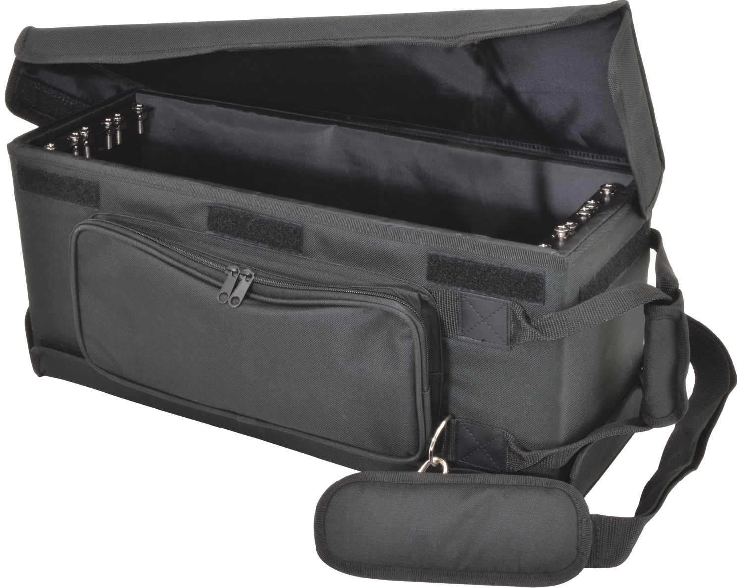 Mixer or Controller Padded Bag. Compartment For Cables. Shoulder Strap & Carry Handle. 10mm PaddingExternal Dimensions: 660 x 420 x 70mm. Designed for DJ controllers and mixers but suitable for a whole range of equipment- this padded equipment bag is the perfect way to store or transport your expensive equipment whilst reducing the risk of damage from external factors! Suitable for and many others: Reloop- TOUCH- MIXON 4 Roland- DJ-505 Native Instruments- TRAKTOR KONTROL S8 All-round padding offers protection from every angle whilst the strong zip provides easy access into the bag. Carrying equipment has never been easier with a comfy padded handle or over shoulder strap to choose from. Use the two front zip pockets for cables and adaptors. An ideal accessory for busy DJ's and entertainers.. Padded mixer and controller Cobra case/bag measuring 660 x 420 x 70mm. Suitable for use with DJ controllers or mixers- the perfect way to store or transport equipment. PADDED EQUIPMENT BAG-MICROPHONE BAG-MIC BAG FOR 6 MICS