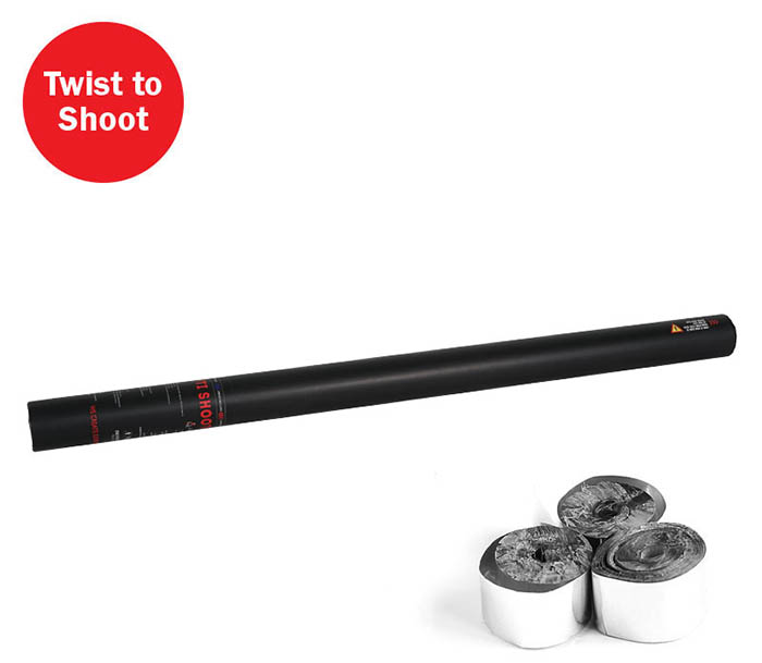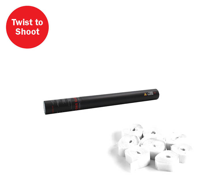 Handheld Confetti Cannons. Available in a Variety of Colours & Sizes. Simple Twist to Shoot Operation. Handheld confetti cannon pre-filled with high quality slow-fall confetti. Simply twist to activate and watch the confetti fall! Ideal for weddings- parties and a host of stage applications.. streamer cannon-confetti cannon-handheld confetti cannon-handheld streamer cannon