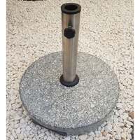 The Harbo 30kg Granite parasol base is suitable for parasols up to 50mm diameter. Stylish round granite base with a modern stainless pole enables you to secure your parasol in an attractive way. Easy to use with thumb screw to secure pole and tidy, slide-out handle to move easily on the integral wheels.