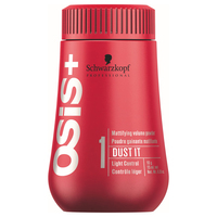 Schwarzkopf Professional OSiS+ Dust It - 10gm \nSchwarzkopf Professional OSiS Dust It is a perfectly formulated hair product that helps maintaining the excellent texture to create dramatic hairstyles instantly. This is a multi-purpose hair styling product that adds character to the desired hairstyle and give the perfect matte finish throughout. Expect the hair to be more manageable and softer with the regular application of this hair volumizing powder.\nNatural Hair Movement and Matte Finish with OSiS+ Dust It\nComplete nourishment with this hair texturizing powder induces strength and maintains good hair health. It is a volume amplifier and gives added strength and nourishment to the hair. The powder is infused with skin-friendly ingredients that rebalances the nutrients and keep the hair in good condition. This conditioning hair powder addresses the hair issues and protects the scalp from potentially damaging elements. Expect the hair to be healthy and hydrated.\nLightweight Styling Powder with Intense Conditioning\nThis is a versatile fixing hair powder, formulated to give a lightweight hold. The more you apply the more control you will get over the desired hairstyle. This hair mattifying powder works deep down the roots and penetrates the hair follicles to bring out the best results. Absorbing the excess of shine from the roots and hair, and thereby providing a matte finish. This styling powder leaves your hair freshly styled and visibly soft.