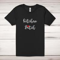 Kitchen Bitch Adult T-ShirtA rude unisex adult t-shirt with 'Kitchen Bitch' printed across the front of a 100% cotton* t-shirt. This rude t-shirt is great as a gift for any occasion.All of our unisex adult t-shirts are designed and hand-printed in the UK and are manufactured from 100% ringspun cotton for a premium quality feel and feature double-stitched waist hem and sleeves, seamless double-needle collar, taped neck and shoulders, and a tubular body that has been quarter turned to avoid a centre crease; available in sizes from Extra Small to 4XL*. *Black & White tees available in sizes XS - 4XL, all other colours available XS - 2XL Size GuideUnisex adult t-shirts are measured across the chest, in inchesXS 30/32'S 34/36'M 38/40'L 42/44'XL 46/48'2XL 50/52'3XL 54/56'4XL 58/60'See more on our clothing size guide (opens in new tab)Please NoteAll of our items are hand-printed to order, as a result, colours may vary between prints - images are for illustration purposes only.Show more products with the Kitchen Bitch design