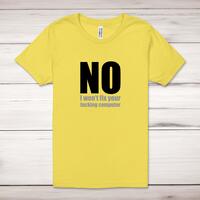 No I Won't Fix Your Fucking Computer Adult T-ShirtA rude unisex adult t-shirt with 'No I Won't Fix Your Fucking Computer' in big, bold lettering printed across the front of a 100% cotton* t-shirt. This rude t-shirt is great as a gift for any occasion.All of our unisex adult t-shirts are designed and hand-printed in the UK and are manufactured from 100% ringspun cotton for a premium quality feel and feature double-stitched waist hem and sleeves, seamless double-needle collar, taped neck and shoulders, and a tubular body that has been quarter turned to avoid a centre crease; available in sizes from Extra Small to 4XL*. *Black & White tees available in sizes XS - 4XL, all other colours available XS - 2XL Size GuideUnisex adult t-shirts are measured across the chest, in inchesXS 30/32'S 34/36'M 38/40'L 42/44'XL 46/48'2XL 50/52'3XL 54/56'4XL 58/60'See more on our clothing size guide (opens in new tab)Please NoteAll of our items are hand-printed to order, as a result, colours may vary between prints - images are for illustration purposes only.Show more products with the No I Won't Fix Your Fucking Computer design