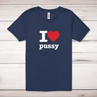 I Love Pussy Adult T-ShirtA rude unisex adult t-shirt with 'I Love Pussy' printed across the front of a 100% cotton* t-shirt. This rude t-shirt is great as a gift for any occasion.All of our unisex adult t-shirts are designed and hand-printed in the UK and are manufactured from 100% ringspun cotton for a premium quality feel and feature double-stitched waist hem and sleeves, seamless double-needle collar, taped neck and shoulders, and a tubular body that has been quarter turned to avoid a centre crease; available in sizes from Extra Small to 4XL*. *Black & White tees available in sizes XS - 4XL, all other colours available XS - 2XL Size GuideUnisex adult t-shirts are measured across the chest, in inchesXS 30/32'S 34/36'M 38/40'L 42/44'XL 46/48'2XL 50/52'3XL 54/56'4XL 58/60'See more on our clothing size guide (opens in new tab)Please NoteAll of our items are hand-printed to order, as a result, colours may vary between prints - images are for illustration purposes only.Show more products with the I Love... design