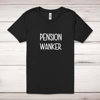 Pension Wanker Adult T-ShirtA rude unisex adult t-shirt with 'Pension Wanker' printed across the front of a 100% cotton* t-shirt. This rude t-shirt is great as a gift for any occasion.All of our unisex adult t-shirts are designed and hand-printed in the UK and are manufactured from 100% ringspun cotton for a premium quality feel and feature double-stitched waist hem and sleeves, seamless double-needle collar, taped neck and shoulders, and a tubular body that has been quarter turned to avoid a centre crease; available in sizes from Extra Small to 4XL*. *Black & White tees available in sizes XS - 4XL, all other colours available XS - 2XL Size GuideUnisex adult t-shirts are measured across the chest, in inchesXS 30/32'S 34/36'M 38/40'L 42/44'XL 46/48'2XL 50/52'3XL 54/56'4XL 58/60'See more on our clothing size guide (opens in new tab)Please NoteAll of our items are hand-printed to order, as a result, colours may vary between prints - images are for illustration purposes only.Show more products with the Pension Wanker design