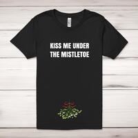Kiss Me Under The Mistletoe Adult T-ShirtA novelty unisex adult t-shirt with 'Kiss Me Under The Mistletoe' printed across the front of a 100% cotton* t-shirt. This novelty t-shirt is great as a gift for any occasion.All of our unisex adult t-shirts are designed and hand-printed in the UK and are manufactured from 100% ringspun cotton for a premium quality feel and feature double-stitched waist hem and sleeves, seamless double-needle collar, taped neck and shoulders, and a tubular body that has been quarter turned to avoid a centre crease; available in sizes from Extra Small to 4XL*. *Black & White tees available in sizes XS - 4XL, all other colours available XS - 2XL Size GuideUnisex adult t-shirts are measured across the chest, in inchesXS 30/32'S 34/36'M 38/40'L 42/44'XL 46/48'2XL 50/52'3XL 54/56'4XL 58/60'See more on our clothing size guide (opens in new tab)Please NoteAll of our items are hand-printed to order, as a result, colours may vary between prints - images are for illustration purposes only.Show more products with the Kiss Me Under The Mistletoe design