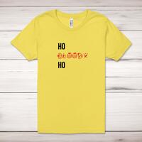 Ho Bloody Ho Adult T-ShirtA rude unisex adult t-shirt with 'Ho Bloody Ho' printed across the front of a 100% cotton* t-shirt. This rude t-shirt is great as a gift for any occasion.All of our unisex adult t-shirts are designed and hand-printed in the UK and are manufactured from 100% ringspun cotton for a premium quality feel and feature double-stitched waist hem and sleeves, seamless double-needle collar, taped neck and shoulders, and a tubular body that has been quarter turned to avoid a centre crease; available in sizes from Extra Small to 4XL*. *Black & White tees available in sizes XS - 4XL, all other colours available XS - 2XL Size GuideUnisex adult t-shirts are measured across the chest, in inchesXS 30/32'S 34/36'M 38/40'L 42/44'XL 46/48'2XL 50/52'3XL 54/56'4XL 58/60'See more on our clothing size guide (opens in new tab)Please NoteAll of our items are hand-printed to order, as a result, colours may vary between prints - images are for illustration purposes only.Show more products with the Ho Bloody Ho design