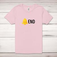 Bell End Adult T-ShirtA rude unisex adult t-shirt with 'Bell End' printed across the front of a 100% cotton* t-shirt. This rude t-shirt is great as a gift for any occasion.All of our unisex adult t-shirts are designed and hand-printed in the UK and are manufactured from 100% ringspun cotton for a premium quality feel and feature double-stitched waist hem and sleeves, seamless double-needle collar, taped neck and shoulders, and a tubular body that has been quarter turned to avoid a centre crease; available in sizes from Extra Small to 4XL*. *Black & White tees available in sizes XS - 4XL, all other colours available XS - 2XL Size GuideUnisex adult t-shirts are measured across the chest, in inchesXS 30/32'S 34/36'M 38/40'L 42/44'XL 46/48'2XL 50/52'3XL 54/56'4XL 58/60'See more on our clothing size guide (opens in new tab)Please NoteAll of our items are hand-printed to order, as a result, colours may vary between prints - images are for illustration purposes only.Show more products with the Bell End design