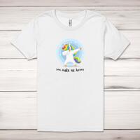 You Make Me Horny Unicorny Adult T-ShirtA rude unisex adult t-shirt with 'You Make Me Horny', choose from either a fabulous pink unicorn or a cheeky dabbing blue unicorn design printed across the front of a 100% cotton* t-shirt. This rude t-shirt is great as a gift for any occasion.All of our unisex adult t-shirts are designed and hand-printed in the UK and are manufactured from 100% ringspun cotton for a premium quality feel and feature double-stitched waist hem and sleeves, seamless double-needle collar, taped neck and shoulders, and a tubular body that has been quarter turned to avoid a centre crease; available in sizes from Extra Small to 4XL*. *Black & White tees available in sizes XS - 4XL, all other colours available XS - 2XL Size GuideUnisex adult t-shirts are measured across the chest, in inchesXS 30/32'S 34/36'M 38/40'L 42/44'XL 46/48'2XL 50/52'3XL 54/56'4XL 58/60'See more on our clothing size guide (opens in new tab)Please NoteAll of our items are hand-printed to order, as a result, colours may vary between prints - images are for illustration purposes only.Show more products with the You Make Me Horny Unicorny design