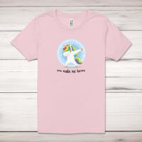 You Make Me Horny Unicorny Adult T-ShirtA rude unisex adult t-shirt with 'You Make Me Horny', choose from either a fabulous pink unicorn or a cheeky dabbing blue unicorn design printed across the front of a 100% cotton* t-shirt. This rude t-shirt is great as a gift for any occasion.All of our unisex adult t-shirts are designed and hand-printed in the UK and are manufactured from 100% ringspun cotton for a premium quality feel and feature double-stitched waist hem and sleeves, seamless double-needle collar, taped neck and shoulders, and a tubular body that has been quarter turned to avoid a centre crease; available in sizes from Extra Small to 4XL*. *Black & White tees available in sizes XS - 4XL, all other colours available XS - 2XL Size GuideUnisex adult t-shirts are measured across the chest, in inchesXS 30/32'S 34/36'M 38/40'L 42/44'XL 46/48'2XL 50/52'3XL 54/56'4XL 58/60'See more on our clothing size guide (opens in new tab)Please NoteAll of our items are hand-printed to order, as a result, colours may vary between prints - images are for illustration purposes only.Show more products with the You Make Me Horny Unicorny design