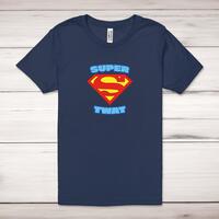 Super Twat Adult T-ShirtA rude unisex adult t-shirt with 'Super Twat' printed across the front of a 100% cotton* t-shirt. This rude t-shirt is great as a gift for any occasion.All of our unisex adult t-shirts are designed and hand-printed in the UK and are manufactured from 100% ringspun cotton for a premium quality feel and feature double-stitched waist hem and sleeves, seamless double-needle collar, taped neck and shoulders, and a tubular body that has been quarter turned to avoid a centre crease; available in sizes from Extra Small to 4XL*. *Black & White tees available in sizes XS - 4XL, all other colours available XS - 2XL Size GuideUnisex adult t-shirts are measured across the chest, in inchesXS 30/32'S 34/36'M 38/40'L 42/44'XL 46/48'2XL 50/52'3XL 54/56'4XL 58/60'See more on our clothing size guide (opens in new tab)Please NoteAll of our items are hand-printed to order, as a result, colours may vary between prints - images are for illustration purposes only.Show more products with the Super Twat design
