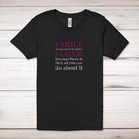 I Smile Because You're My Mother Adult T-ShirtA rude unisex adult t-shirt with 'I Smile Because You're My Mother I Laugh Because There Is Fuck All You Can Do About It' or you can also choose sister or daughter designs printed across the front of a 100% cotton* t-shirt. This rude t-shirt is great as a gift for any occasion.Select the design required:\nDesign 1 - Mother\nDesign 2 - Sister\nDesign 3 - DaughterAll of our unisex adult t-shirts are designed and hand-printed in the UK and are manufactured from 100% ringspun cotton for a premium quality feel and feature double-stitched waist hem and sleeves, seamless double-needle collar, taped neck and shoulders, and a tubular body that has been quarter turned to avoid a centre crease; available in sizes from Extra Small to 4XL*. *Black & White tees available in sizes XS - 4XL, all other colours available XS - 2XL Size GuideUnisex adult t-shirts are measured across the chest, in inchesXS 30/32'S 34/36'M 38/40'L 42/44'XL 46/48'2XL 50/52'3XL 54/56'4XL 58/60'See more on our clothing size guide (opens in new tab)Please NoteAll of our items are hand-printed to order, as a result, colours may vary between prints - images are for illustration purposes only.Show more products with the I Smile Because You're My... design