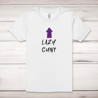 Lazy Cunt Adult T-ShirtA rude unisex adult t-shirt with 'Lazy Cunt' printed across the front of a 100% cotton* t-shirt. This rude t-shirt is great as a gift for any occasion.All of our unisex adult t-shirts are designed and hand-printed in the UK and are manufactured from 100% ringspun cotton for a premium quality feel and feature double-stitched waist hem and sleeves, seamless double-needle collar, taped neck and shoulders, and a tubular body that has been quarter turned to avoid a centre crease; available in sizes from Extra Small to 4XL*. *Black & White tees available in sizes XS - 4XL, all other colours available XS - 2XL Size GuideUnisex adult t-shirts are measured across the chest, in inchesXS 30/32'S 34/36'M 38/40'L 42/44'XL 46/48'2XL 50/52'3XL 54/56'4XL 58/60'See more on our clothing size guide (opens in new tab)Please NoteAll of our items are hand-printed to order, as a result, colours may vary between prints - images are for illustration purposes only.Show more products with the Lazy Cunt design