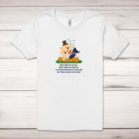 Humpty Dumpty Adult T-ShirtA rude unisex adult t-shirt with 'Humpty Dumpty sat on a wall, Humpty Dumpty had a great fall. All the King's horses and all the King's men said 'Serves you right you fat fucker' ' printed across the front of a 100% cotton* t-shirt. This rude t-shirt is great as a gift for any occasion.All of our unisex adult t-shirts are designed and hand-printed in the UK and are manufactured from 100% ringspun cotton for a premium quality feel and feature double-stitched waist hem and sleeves, seamless double-needle collar, taped neck and shoulders, and a tubular body that has been quarter turned to avoid a centre crease; available in sizes from Extra Small to 4XL*. *Black & White tees available in sizes XS - 4XL, all other colours available XS - 2XL Size GuideUnisex adult t-shirts are measured across the chest, in inchesXS 30/32'S 34/36'M 38/40'L 42/44'XL 46/48'2XL 50/52'3XL 54/56'4XL 58/60'See more on our clothing size guide (opens in new tab)Please NoteAll of our items are hand-printed to order, as a result, colours may vary between prints - images are for illustration purposes only.Show more products with the Humpty Dumpty design