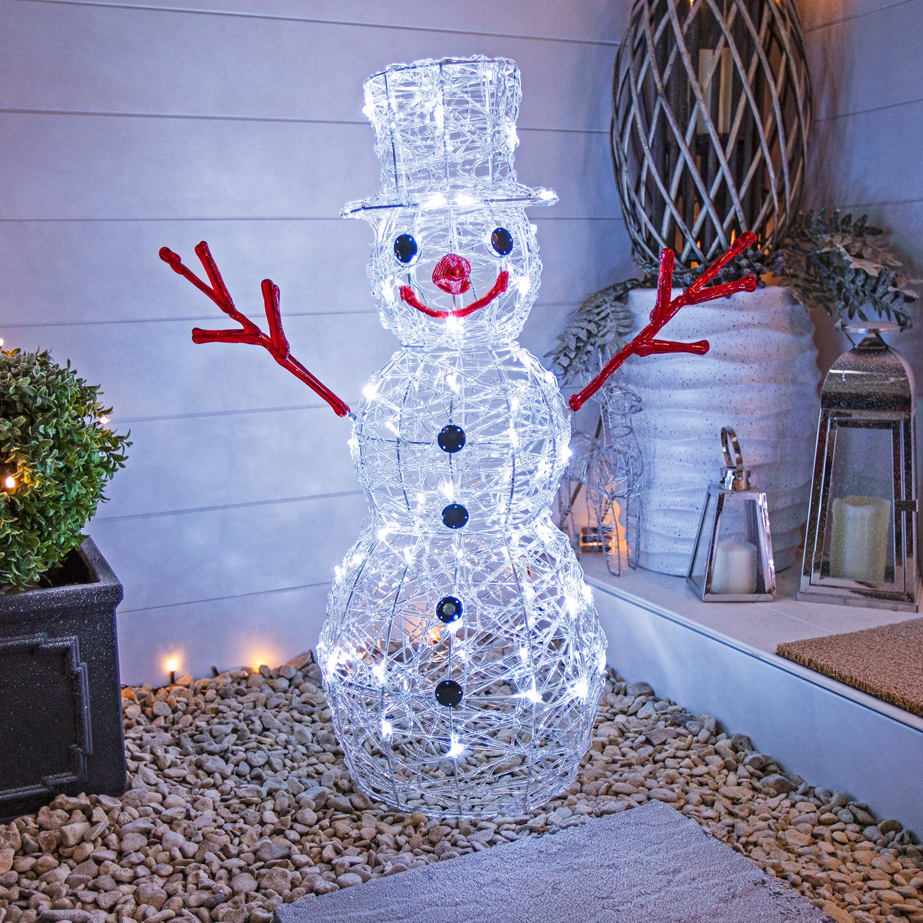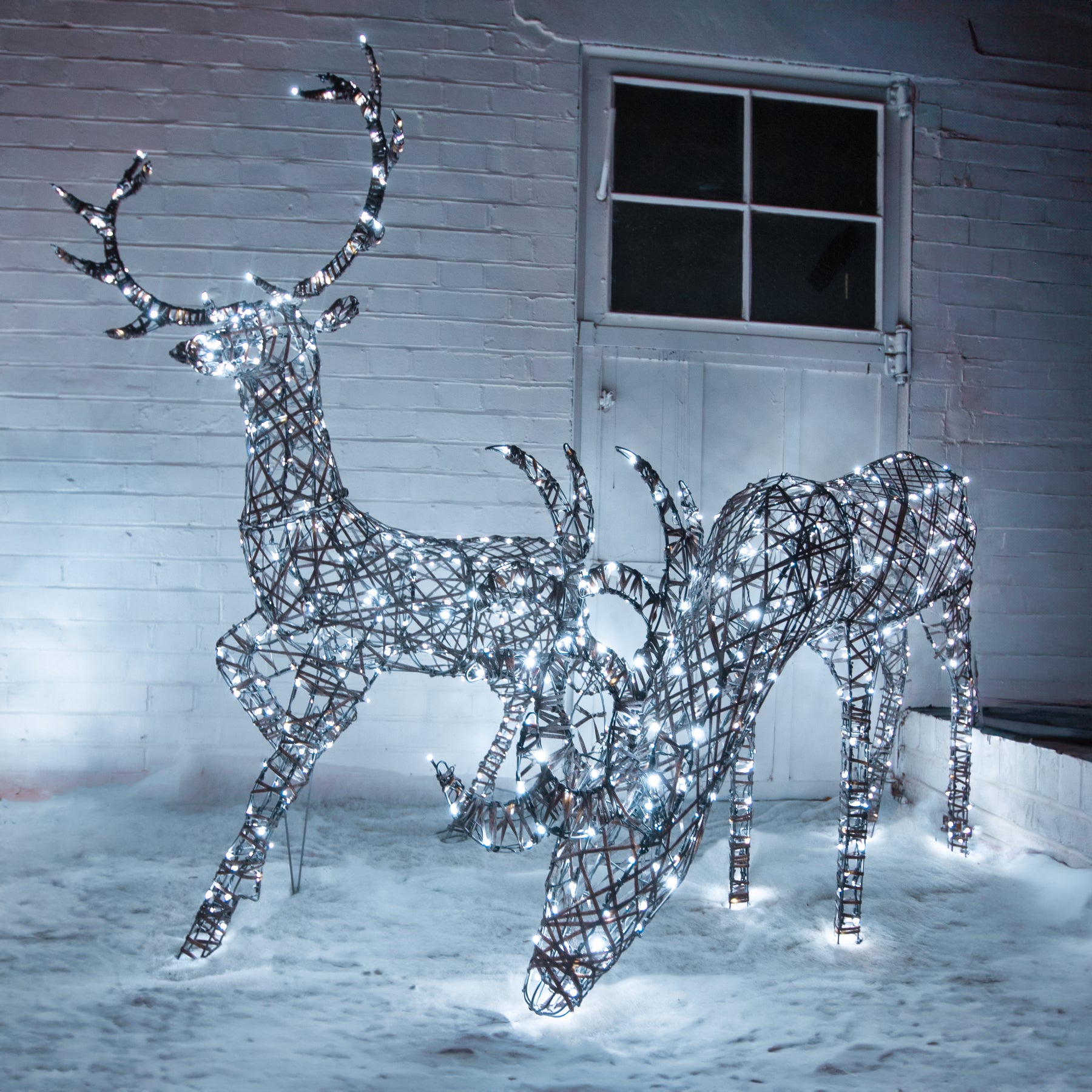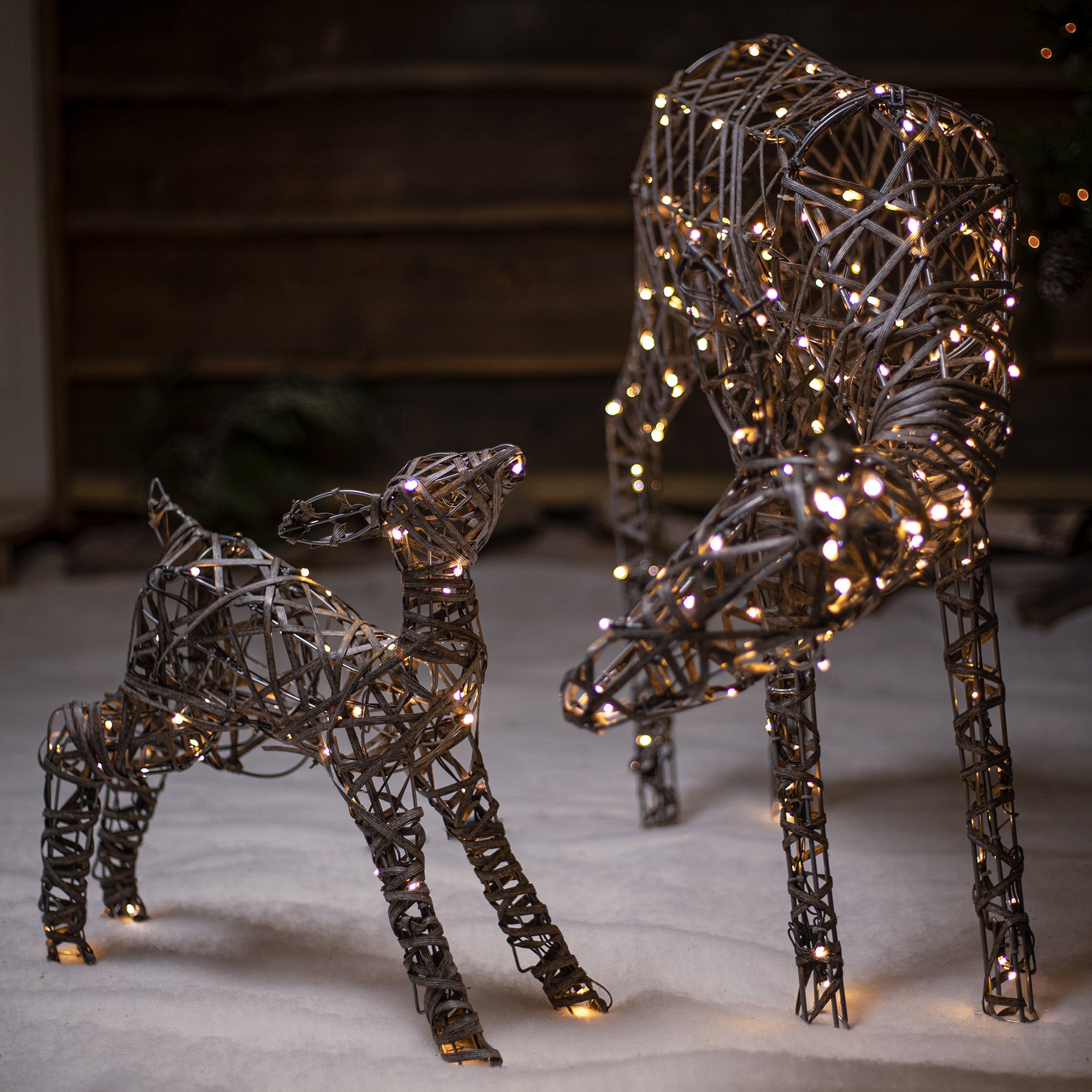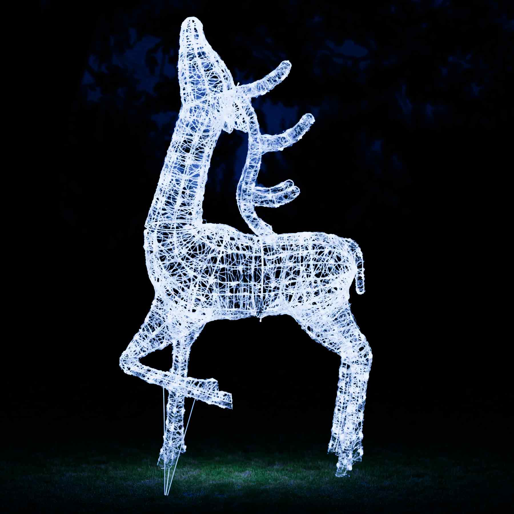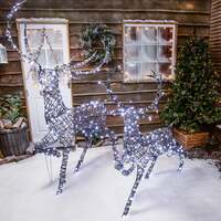 Bring a touch of festive sparkle to your Christmas displays with this stunning reindeer duo by The Christmas Centre. Choose from warm white lights, bright white lights or a combination of both. All of the LED components are made from copper, it eliminates the traditional problem of rust building up within the bulb holder over time. With a handy timer you can set your lights to come on for the same 8 hours each day. Simply press the button at the time you would like your lights to turn and on and they will stay on for 8 hours. This cycle will repeat until you reset them. Alternatively if you would prefer, you can turn the timer off and use the lights manually. Features 1.9m Grey wicker reindeer and 1.4m Grey wicker reindeer 10m lead length 8 hour timer 1.9m Grey wicker reindeer - 320 LEDs 1.4m Grey wicker reindeer - 300 LEDs Some assembly required