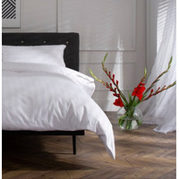 Elevate your bedroom with our luxury polycotton sateen stripe duvet cover set that offers a touch of sophistication. This design has both a classic and contemporary design feel. Upgrade your bedding with this luxurious and stylish set. Product Long single duvet cover set in white stripe sateen, end with popper fasteners Manufacturer The Big Little Duvet Co. Country of Origin UK Size L220cm x W165cm No of Pillow Cases 2 x Housewife Cover Fine Polycotton 220 Thread Count Machine Washable Yes/ Warm wash, no bleach/tumble dry low