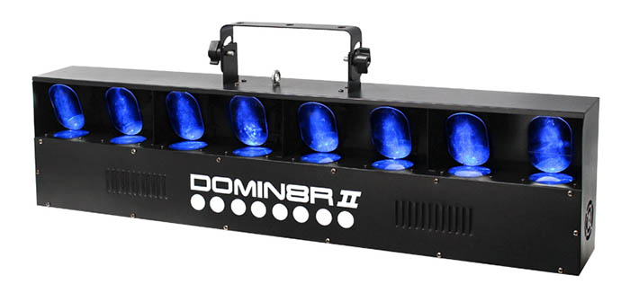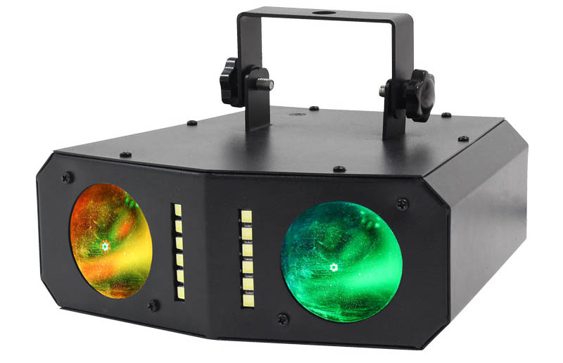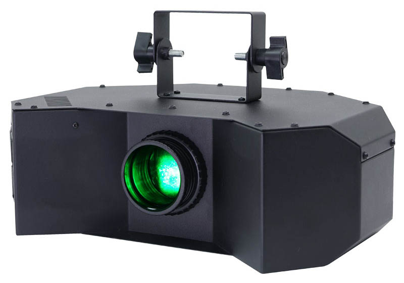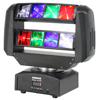 3W CREE LEDs. Selectable DMX Channels. Auto- Sound Active and Master/Slave Modes plus Built-In Programs. Quick Release Omega Clamps Included. IEC Power Input. 3 Pin DMX Input/Output. Fan CooledMains Input: 100-240Vac- 50/60Hz Power Consumption: 55W LED: 8 x 3W (2R- 2G- 2B & 2W) Beam Angle: 3.4 Degrees DMX Channels: 1- 11 or 15 Dimensions: 300 x 285 x 145mm Weight: 3Kg. Fast moving 3.4ø beams are projected from the twin- individually controllable- tilting bars which create dynamic atmospheric effects. Smooth- fast motors for pan and independent tilt movements allow the fixture to generate stunning mid-air effects from its 8 zones which are ideal for mobile DJs and clubs. On-board modes include: DMX- stand alone- sound active and master/slave. The hanging bracket allows the fixture to be installed in clubs- and also allows DJs to easily attach it to stands and trussing.. led moving head-led stage light-led disco light