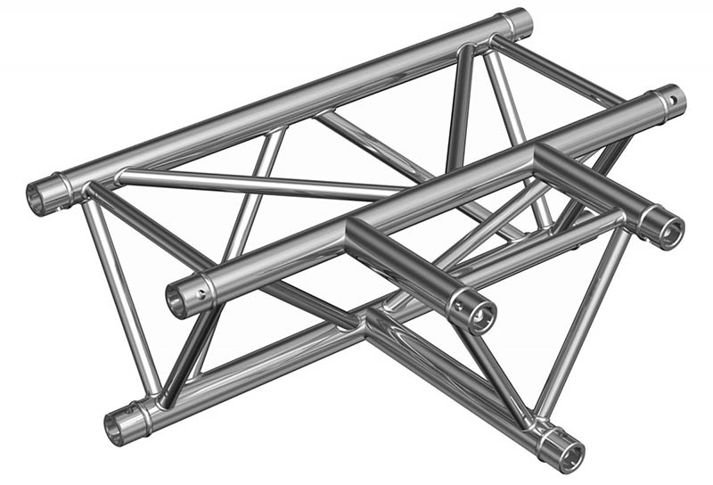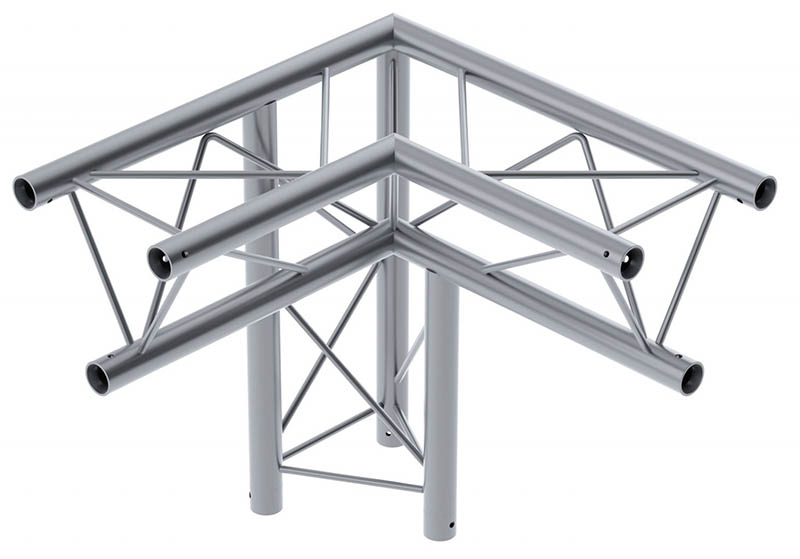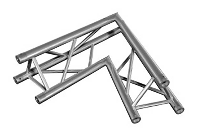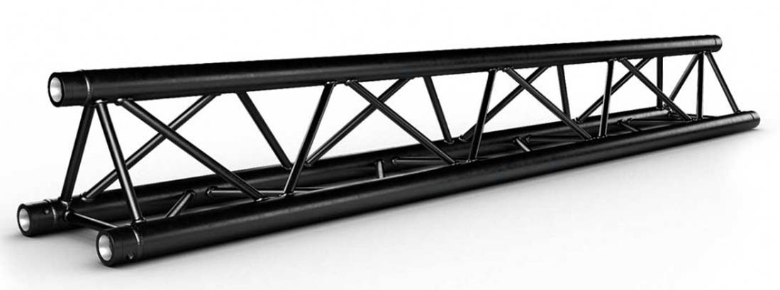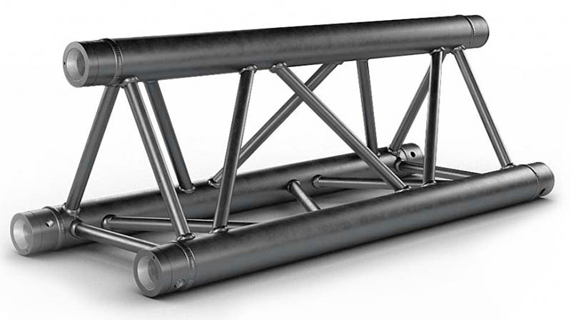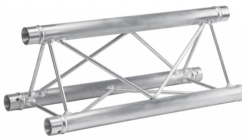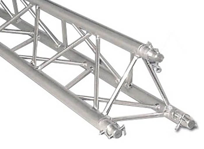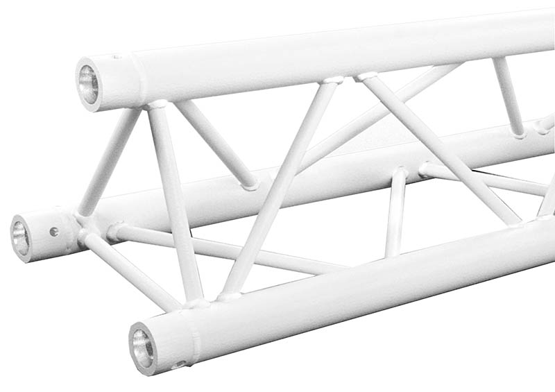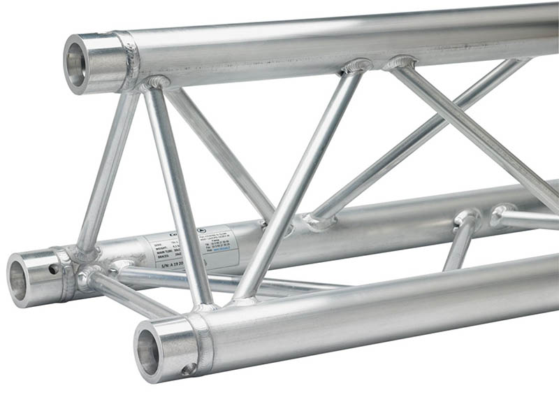 Strong Triangle Truss. 50mm Tube. Complete With Fixing Kit. Available in Various LengthsTriangle Size: 290 x 290 x 290mm Tube Size: 50mm Wall Thickness: 2mm. The Global Truss F33 is a trussing system known for its TUV certification- ensuring high-quality aluminium welding and a 2mm wall thickness. These features contribute to its impressive load handling capacity- making it suitable for a wide range of applications- including fixed installations- shop fittings- and rental setups. The F33 truss system offers a comprehensive selection of lengths (0.25m- 0.4m- 0.5m- 0.75m- 1m- 1.5m- 2m- 2.5m- 3m- 3.5m & 4m) baseplates- corners- connectors- and couplers. This extensive range of components allows for versatile and customizable configurations- accommodating various design requirements and structural needs. When it comes to assembly- the F33 truss system provides 3 conical connectors with pins and R clips with each piece. This design simplifies and expedites the assembly process- as the conical connectors ensure a secure connection between truss sections- while the pins and R clips add an extra layer of safety by preventing accidental disconnection. Overall- the Global Truss F33 is a reliable and durable trussing system.. Global F33 triangle truss for 50mm tubes- part of the Global Truss F33 trussing system widely used in stage and event production to create temporary structures for events. truss-trussing-trussing straight lengths-triangle truss-global truss
