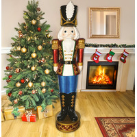 This Red, White, and Blue Pre-Lit LED Christmas Nutcracker Soldier by The Christmas Centre is based on the traditional German wooden Nutcrackers. It is made of sturdy polyresin and is suitable for both indoor and outdoor use. It will look fantastic beside your fireplace or as a guard at your front door. With warm white LED lights embedded in its jacket and hat, this magnificent giant nutcracker is a fantastic addition to any holiday décor. Three AA batteries are needed to light him up (not included). Additionally, it features an integrated timer that starts working as soon as this large nutcracker lights up. It will turn on for 6 hours and then turn off for 18 hours. With his amazing top hat and gold shoulder pads, this tall nutcracker will stand very proud wherever you want to set him. Features Lifelike nutcracker (167.5cm tall) Traditional design Static warm white LED lights Built in timer (6 hours on, 18 hours off) Suitable for indoor and outdoor use 3x AA batteries required - NOT INCLUDED Specifications Colour(s): Red, white, and blue Material(s): Polyresin and fibre glass No. of LED Lights: 17 Dimensions: 45cm (L) x 37.5cm (W) x 168cm (H) Weight (kg): 11