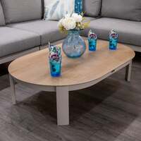 The Bracken Outdoors Nevada coffee table is made from powder-coated aluminium with a wood effect top. Suitable to be left outside all year round with little maintenance required. All that's needed to keep the sturdy metal frame clean is an occasional wipe down with warm, soapy water and a soft cloth. Features Coffee table Durable powder coated aluminium frame Easy assembly 5 year limited warranty Dimensions : 120cm (L), 76cm (W), 30cm (H)