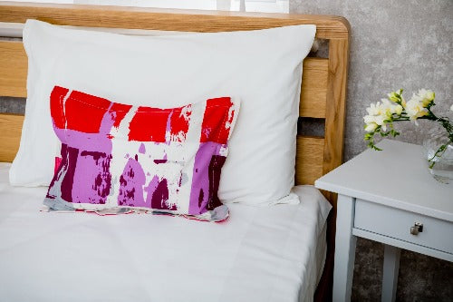 These beautiful pillows have a luxurious hollowfibre filling wrapped in soft touch cover, so you can enjoy ultimate luxury and comfort. Gives you comfort and support to help you gently drift into the peaceful night's sleep that you deserve every night. Wake up refreshed and ready to start your day. Cover 100% Polyester. Filling 100% Recycled Polyester. Made in UK. Suitable for frequent washing, machine washable at 40 degree or less, tumble dry on low heat, do not dry clean or iron.