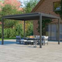 The Bracken Outdoors Luna 3m x 4m Anthracite Grey Rectangular Garden Pergola is a high-quality aluminium pergola with square posts and galvanised steel louvres. Allowing you to sit in shade or sunshine and even providing cover when it rains, this high-quality metal pergola is UV protected to give you and your family a safe place to enjoy your garden. The innovative shading system not only provides effective shade and weather protection but it also has channels that direct the water into a hidden internal gutter system, providing a practical and efficient solution. The water flows into the post and drains at its base. The Luna Pergola is the ideal solution to extending your time in the garden, especially with the British weather! Features Long-lasting metal structure Up to 40kg/m2 load capacity Wind resistance 60km/h Simple assembly (2 - 3 hour build time for 2 - 3 people) Roof gutter drainage connection Galvanised steel louvres Anthracite grey colour Manually operated using a crank handle Hidden drainage system Weather resistant UV protection External gearbox Dimensions Aluminium Canopy: 3995mm x 2931mm Post Size: 100mm x 100mm Full Height: 2500cm Height (floor to beam): 2380mm Length: 3995mm (including base plates) and 3795mm (excluding base plates) Width: 2931mm (including base plates) and 2731mm (excluding base plates) . Bracken Outdoors Luna 3m x 4m Anthracite Grey Metal Rectangular Garden Pergola, Mid June 2025