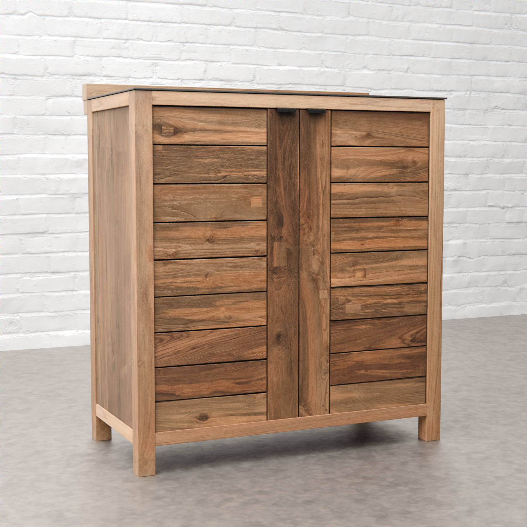 The Draco Grills Teak Modular Outdoor Kitchen Add-On Over Counter Double Shelf with Ceramic Top is the ultimate blend of style, practicality, and sustainability for your outdoor kitchen. Made from premium reclaimed teak wood, this unit showcases rich, natural wood tones while supporting eco-conscious living by repurposing high-quality materials. The weather-resistant teak ensures exceptional durability, standing up to the elements and providing lasting beauty. Featuring a double shelf design, this add-on unit offers plenty of space for storing kitchen essentials, decorative items, or additional cooking tools, keeping your outdoor space tidy and organized. The sleek ceramic tops add a touch of modern elegance, offering a heat-resistant and easy-to-clean surface ideal for food prep, serving, or even as additional counter space when grilling. Designed to fit seamlessly over your existing counter, this modular unit enhances your outdoor kitchen setup by providing extra storage and workspace without compromising on style. Whether you're hosting a barbecue or enjoying a quiet evening outdoors, the Draco Grills Teak Double Shelf Unit brings functionality and sophistication to your outdoor cooking space with its exceptional design and sustainable craftsmanship. Draco Grills' Teak Outdoor Kitchens are made entirely out of reclaimed Teak. It is essentially maintenance free due to its high concentration of natural oils and minerals, which make it resistant to water, rot, insect infestation, fungal decay or mildew. If you take good care of your Teak kitchen, it will survive for many years. Teak is a natural material, therefore variations in colour, grain and other natural characteristics are to be expected, especially when using 100% reclaimed Teak. When your Teak units arrive, they may be covered in surface oil. This is normal, and any residue will be eliminated within 7-10 days as your units settle into their new environment. It is important to understand that all timber components will age to the same silver-grey patina inherent that Teak does. The natural golden appearance can be maintained by applying Teak treatments from the top to prevent the timber from decaying naturally. The British climate is unpredictable, thus cracks will appear on occasion, particularly on the end grain. These cracks (opening and closing of the grain) can be caused by abrupt changes in air humidity and temperature, especially during the summer months. This is completely normal and should not have any negative impact on the strength or durability of your kitchen units. We recommend that all moving parts and fittings be lubricated and tightened before use. Please keep in mind that brass-ware might tarnish if left out in the open. Features High quality Reclaimed Teak Dark Stone Ceramic worktop 1 year limited warranty Please note: Double door cupboard not included Dimensions Width: 111 cm Height: 58cm Depth: 63cm