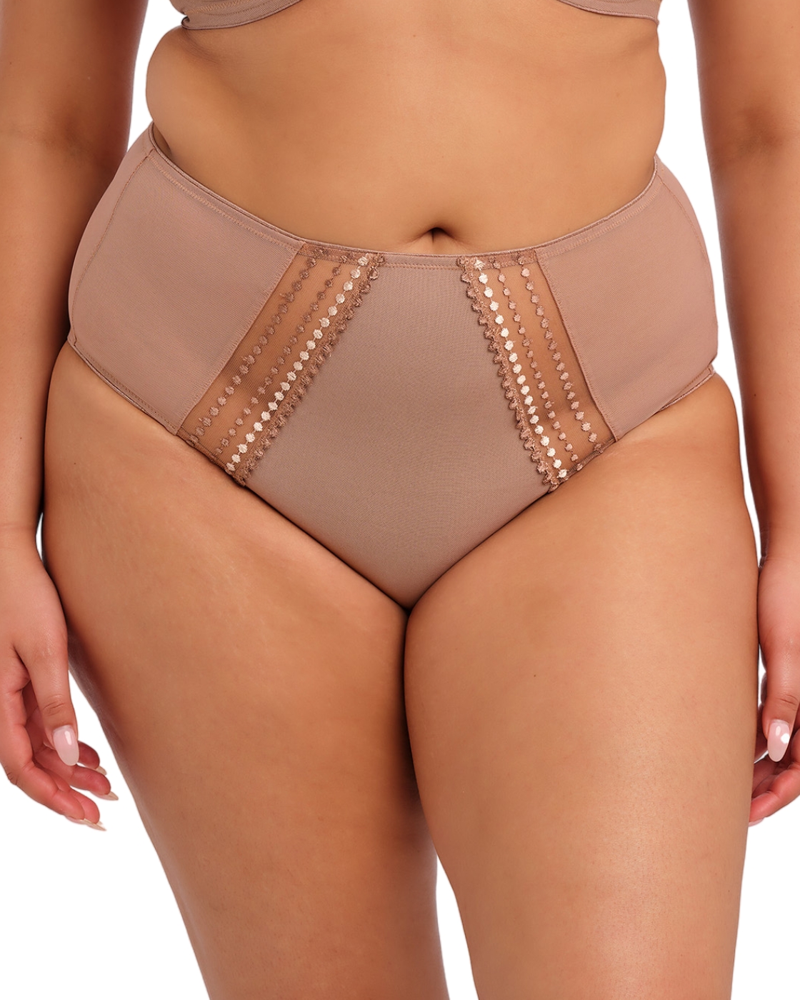 Is your lingerie drawer in need of a refresh for summer? If so then this thong by Prima Donna is a must-have! From the Orlando range, it features shimmery embroidery at the hips, an elastic waistband for comfort and mid-rise design with a classic minimal thong rear. The centre of the thong has an embroidery design on opaque materials whilst the rear is made from plain opaque fabrics. Matching bra available to create a fully coordinated summer look, that is sure to leave you feeling feminine.