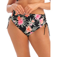 Transform your holiday wardrobe with Elomi's Dark Tropics Adjustable Bikini Brief. This stylish and comfy bikini brief boasts an all-over floral print on deep-hued fabric to help you make a splash this season. Constructed from lightweight fabric with Xtra Life LYCRA , it is designed for long-lasting wear and fade resistance for superior colour retention. The high waist brief offers a higher cut leg line to be both flattering and comfortable, while the adjustable tie sides provide customisable leg coverage for preference. For days spent swimming and sunbathing, the Elomi Dark Tropics Adjustable Bikini Brief is an ideal choice of swimwear for any fashion-forward woman who wants to look good at the poolside.