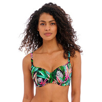 Embrace your wild side with Freya's Cala Selva collection this season. Switch out your basic swimwear for this bright and bold botanical jungle-inspired bikini top. Featuring a sweetheart neckline to flatter your bust and underwired, padded cups for a rounded finish. The adjustable shoulder straps ensure a customisable fit and this piece is secured at the rear with the back clasp for a secure fit. Complete the look with the available matching items from Freya's Cala Selva range today.