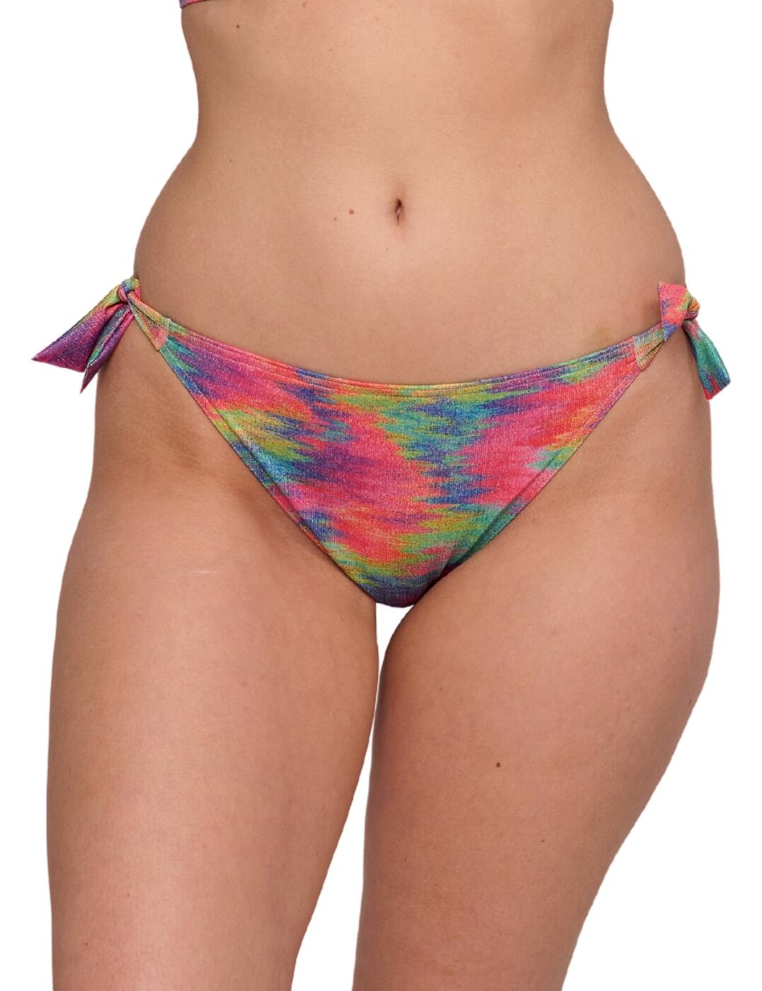 Turn heads in this tie-side bikini brief from the tantalising Casablanca collection by Pour Moi. This cute bikini brief features a flirty and fun tie side, adjustable to personable fit and preference. The high leg cut ensures the most flexible feeling whilst the funky statement print does show off. This flirty mid-rise shape accentuates the curves of the body, finished off with moderate rear coverage. Team up with matching coordinates for a fresh new Casablanca look!