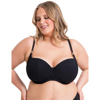 Get ready to make a splash this season with the Curvy Kate Jet Set balcony bikini top. The balcony style of this bikini top provides full coverage, ensuring you feel secure and confident as you soak up the sun. But don't let the coverage fool you, the twisted ribbed texture adds a playful and flirty touch to this classic style. An underwired, padded design provides lift and shape, making you feel and look your best. Meanwhile, gold hardware adds a touch of luxury and sophistication, making you feel like a jet-setting fashionista wherever you go. With adjustable shoulder straps and a classic back clasp, you can customize the fit to your body for maximum comfort. But don't stop at just the top, complete your glamorous beach look with the coordinating pieces available to match.