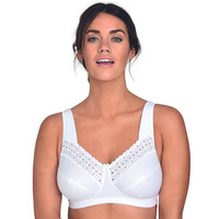 The Broderie Anglaise bra is unpadded and unlined giving you natural definition and optimum comfort. The full cup coverage supports your breasts and gives you a smoother silhouette under clothing. Feminine eyelet embroidery on the upper cup adds a delicate finish to this piece. The 2-panel cup fully supports your curves and gives you a slightly pointed silhouette. Comfortable padded shoulder straps help to relieve shoulder strain. Fastens at the back with an adjustable hook and eye closure.