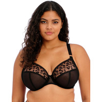 If you're looking for lingerie that is both comfortable and fashion-forward, then the Elomi Namrah plunge bra is perfect for you. This bandless style has no fabric underneath the cup to prevent any roll up and it features an elasticated neck edge for ease of fit. The top cup embroidered design incorporates a leopard spot pattern that is sure to draw attention and the bow with metal ring detail across the centre front adds a touch of glamour. The soft fold over elastic overlay on the bottom edge of the underband and centre gore will give all-day comfort while the rose gold metal apex rings add a chic look. And don't worry about support - this bra has underwired, non-padded cups, and a hook and eye closure so it'll stay in place even when diving off that high dive! With its plunging neckline, you'll be confident knowing your curves get extra flattering attention. So why wait? Get ready for style with class with the Elomi Namrah plunge bra today!