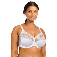 Maximise your comfort with this sophisticated and elegant underwired three-part bra from the Amazone collection by Chantelle. This bra features comfortable, full-coverage cups for a modest and flattering neckline. The 3-part cups include side panels for increased support, with the top part of the cups being made out of stylish semi-sheer material. Shoulder straps are fully adjustable and the hook and eye closure on the back ensures security. The underwiring aids in supporting your bust, with the non-padded design giving you a natural look while still offering a complimentary silhouette. Delicate embroidery on the cups completes this captivating, classically chic design!
