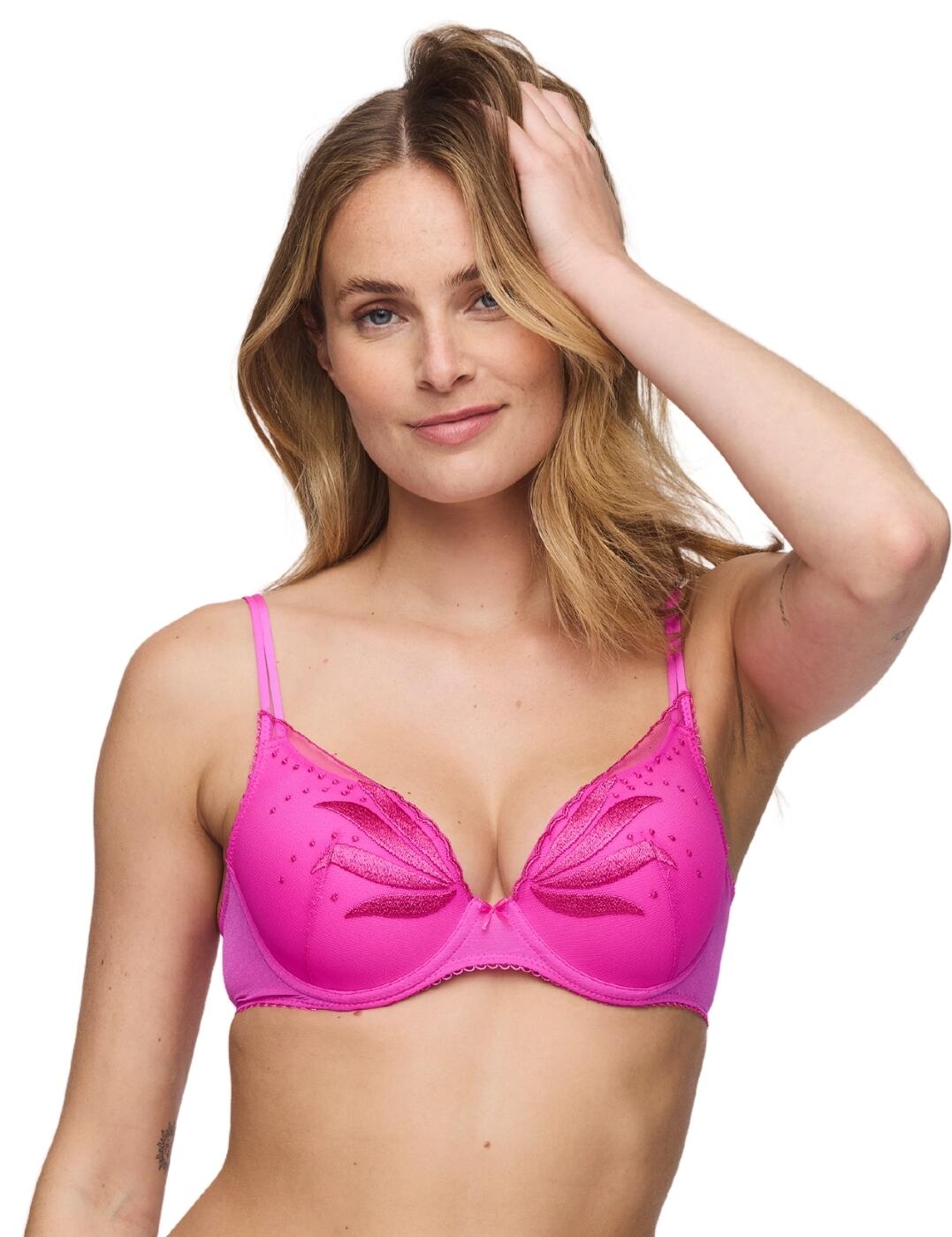 Step into your own personal meadow of beauty and grace with the Panache Meadow plunge bra. Made for the bold and confident woman, this is not your average plunge bra. It's a piece of art, crafted with intricate details and designed for the ultimate support and comfort. Its non-padded, 3-piece cups adorned with delicate floral embroidery offer a natural shape while providing exceptional comfort. The bra's underwire ensures ample support, making you feel secure throughout your day. A charming mini bow at the centre adds a playful touch, complementing the overall design. Adjustable straps and a secure hook and eye closure allow for a perfect fit, tailored to your body. Pair it with matching pieces from the collection to complete your exquisite lingerie look. Elevate your wardrobe with this enchanting set, embodying a blend of sophistication and whimsical charm.